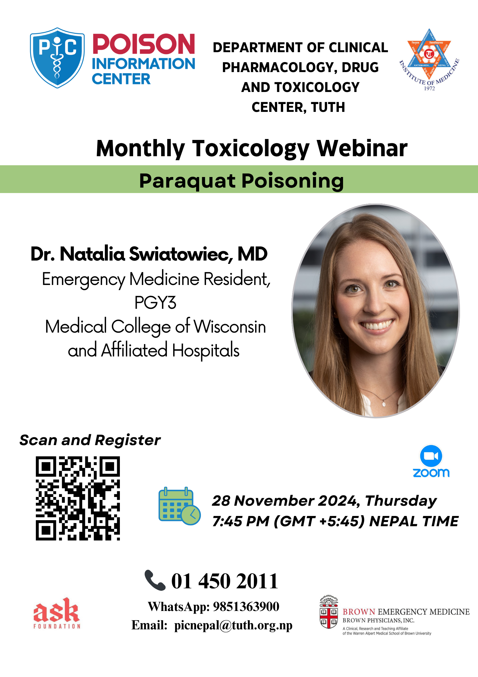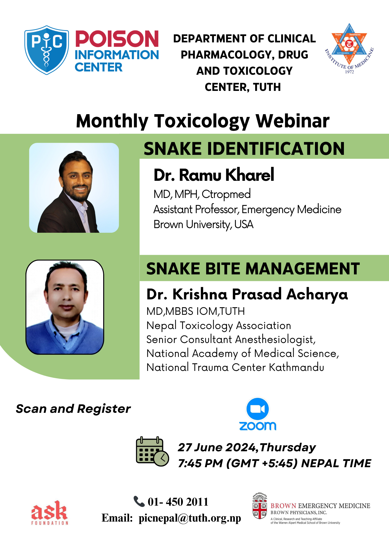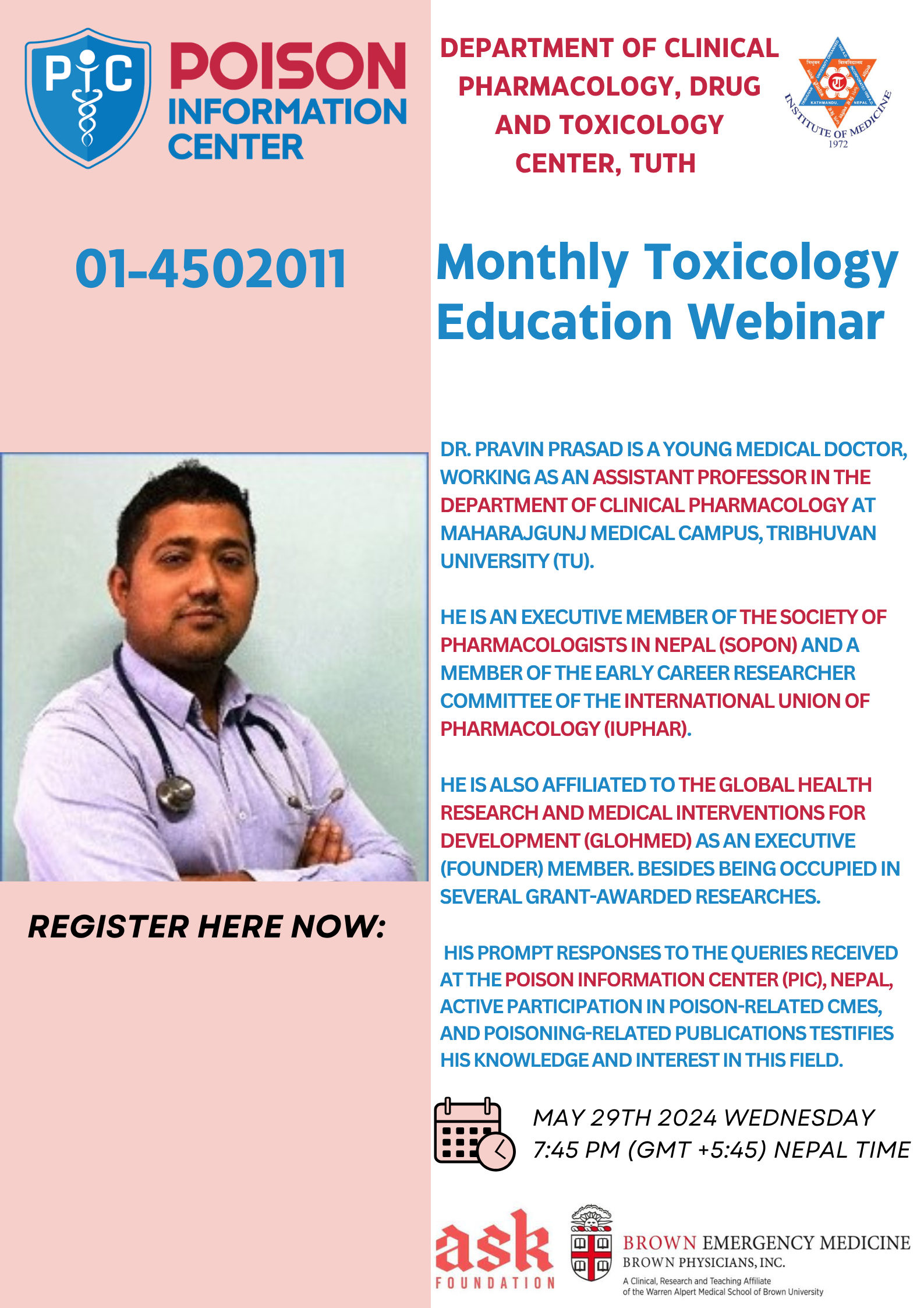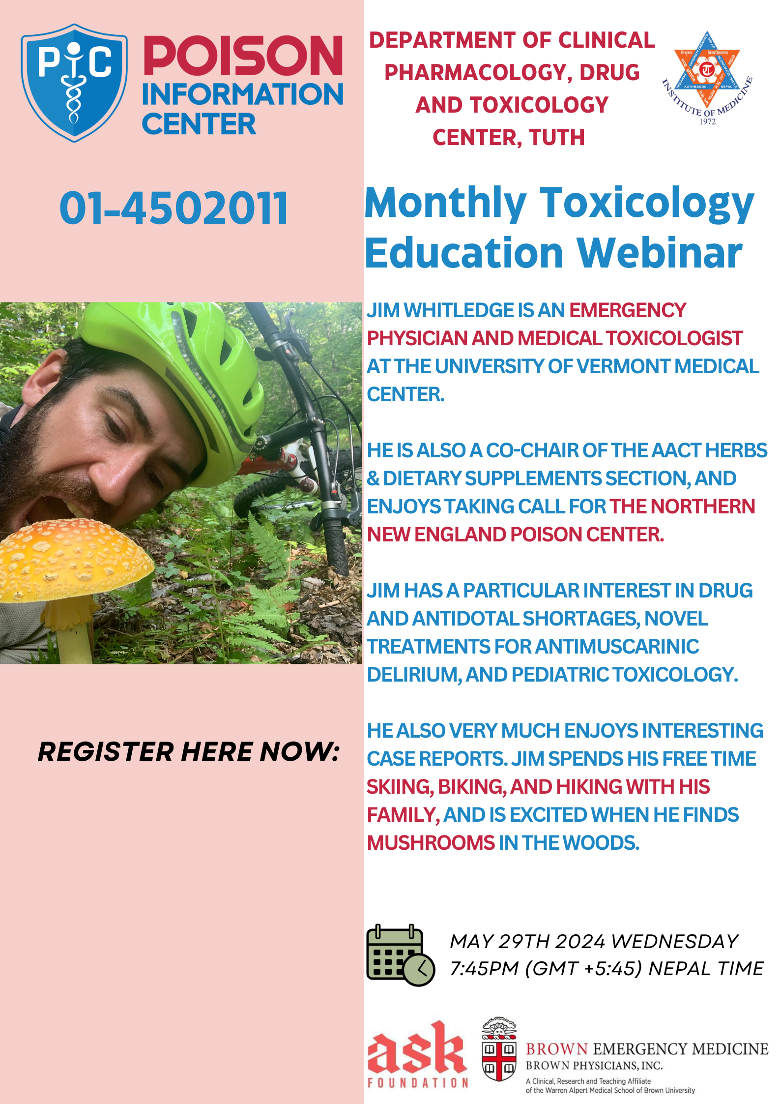 We organize monthly toxicological webinars featuring national and international experts.